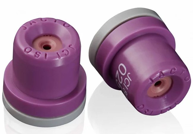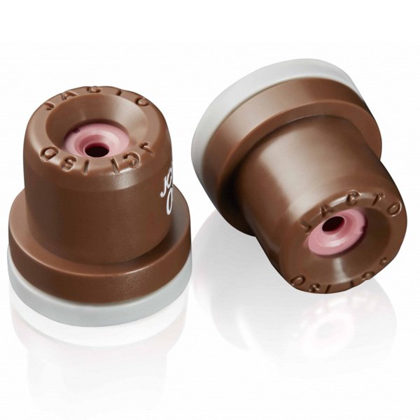 Boquilla constituida de cerámica de alta resistencia al desgaste. La proyección del chorro cónico promueve deposición de gotas con excelente cobertura del objetivo.