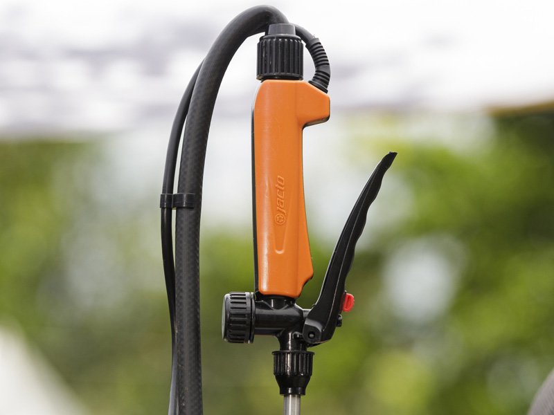 Equipado con un depósito de 18 litros y una bomba de alta capacidad, puede alcanzar hasta 150 psi con 1 boquilla JHC80015 (chorro cónico vacío) y 3,8 L/min de flujo abierto, aportando mayor agilidad a la jornada de trabajo. De uso sencillo, dispone de un potenciómetro para ajustar con precisión la presión y encender y apagar el equipo.