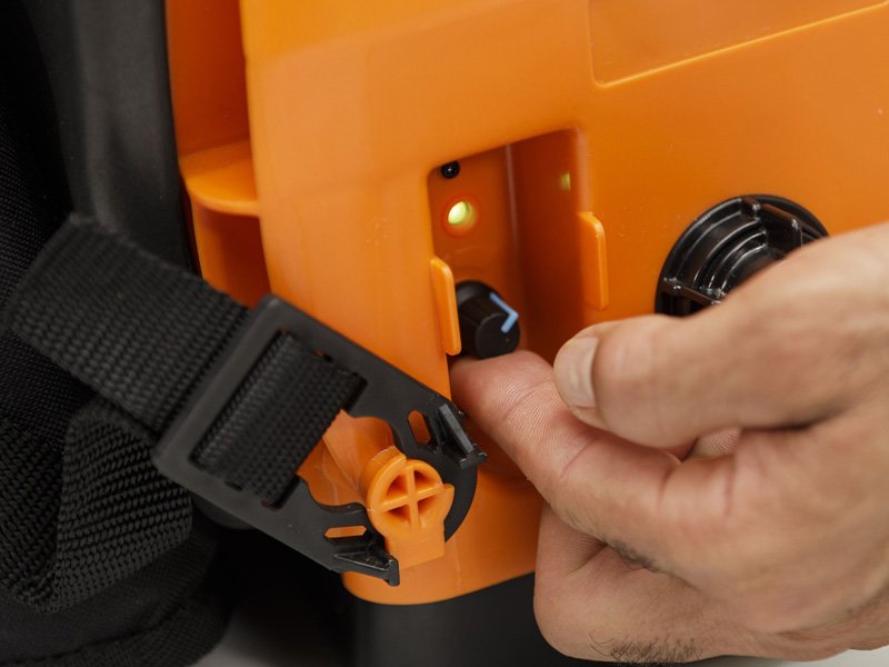 Pensando en la comodidad del operador, el equipo fue desarrollado con diseño ergonómico y viene equipado con cinturón deluxe, dividiendo el peso del cuerpo en 3 puntos: hombros, pecho y espalda baja. También tiene bajo nivel de ruido, baja vibración y cero emisiones contaminantes.